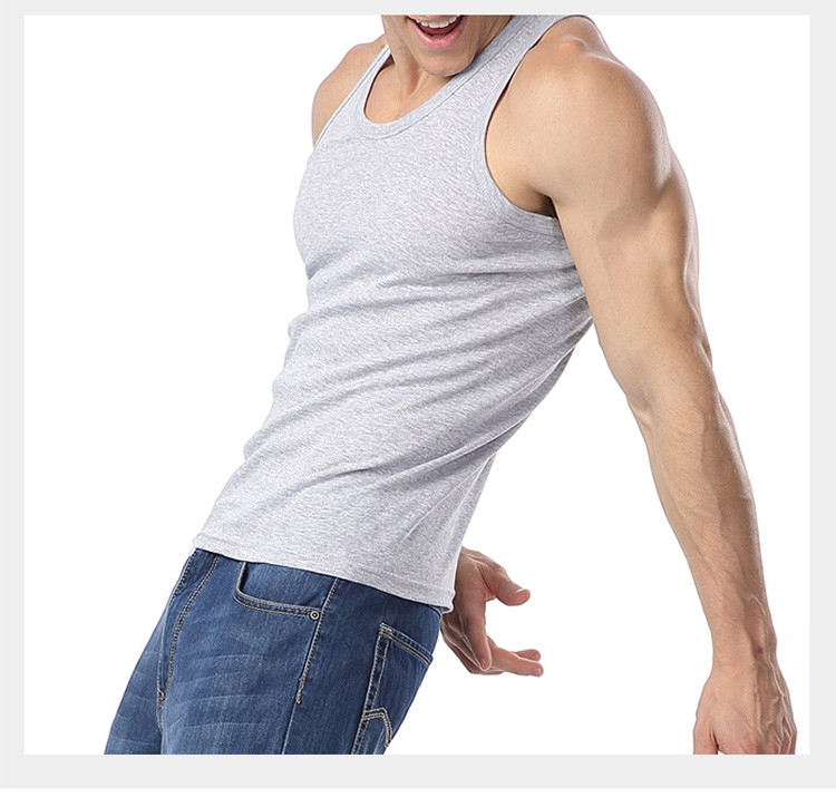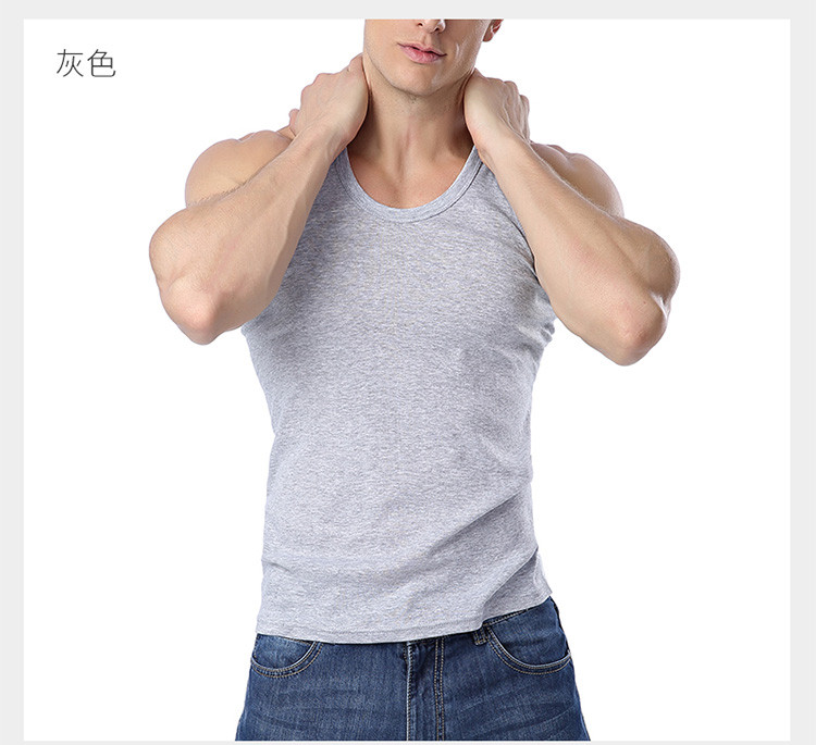 男士純色吸汗運動純棉羅紋圓領(lǐng)背心