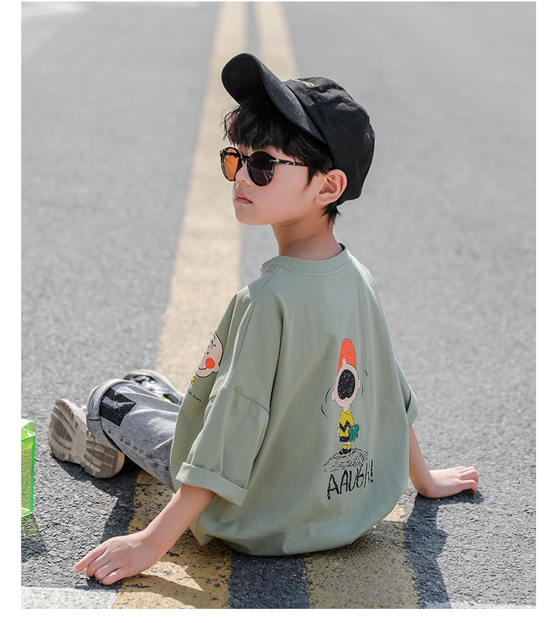 浪莎男童短袖t恤純棉2021新款中大童夏裝中童半袖韓版兒童裝上衣
