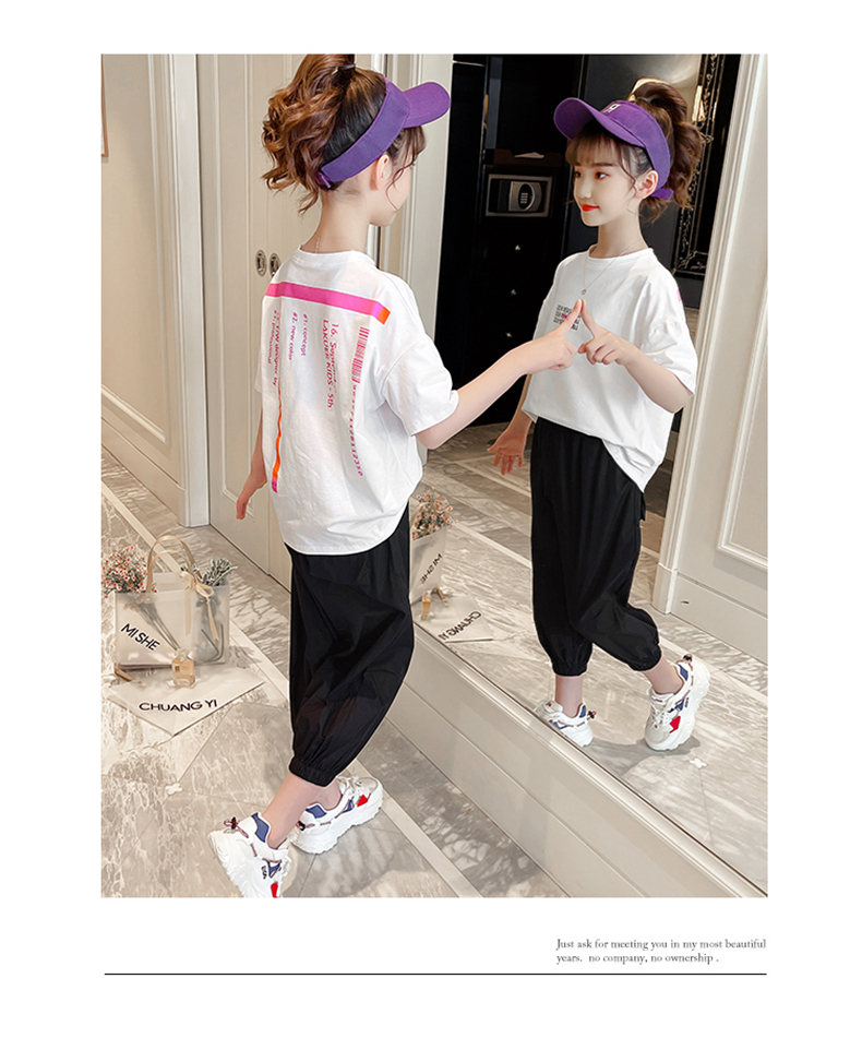 女童夏裝網紅套裝洋氣2021新款韓版時髦大童裝兒童短袖休閑兩件套