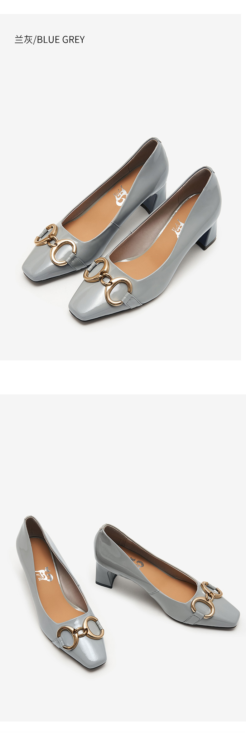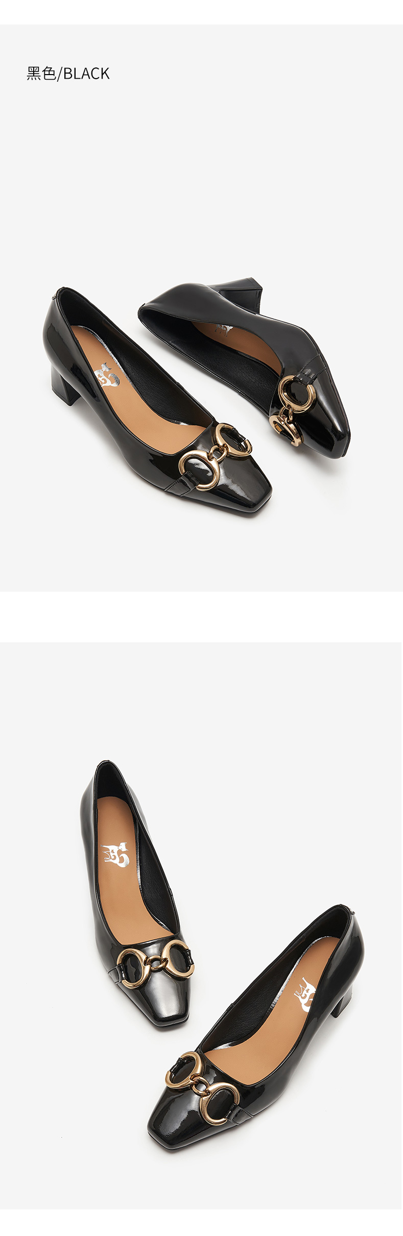 淺口高跟鞋女春夏鞋子2021新款英倫小皮鞋一腳蹬方頭真皮粗跟單鞋