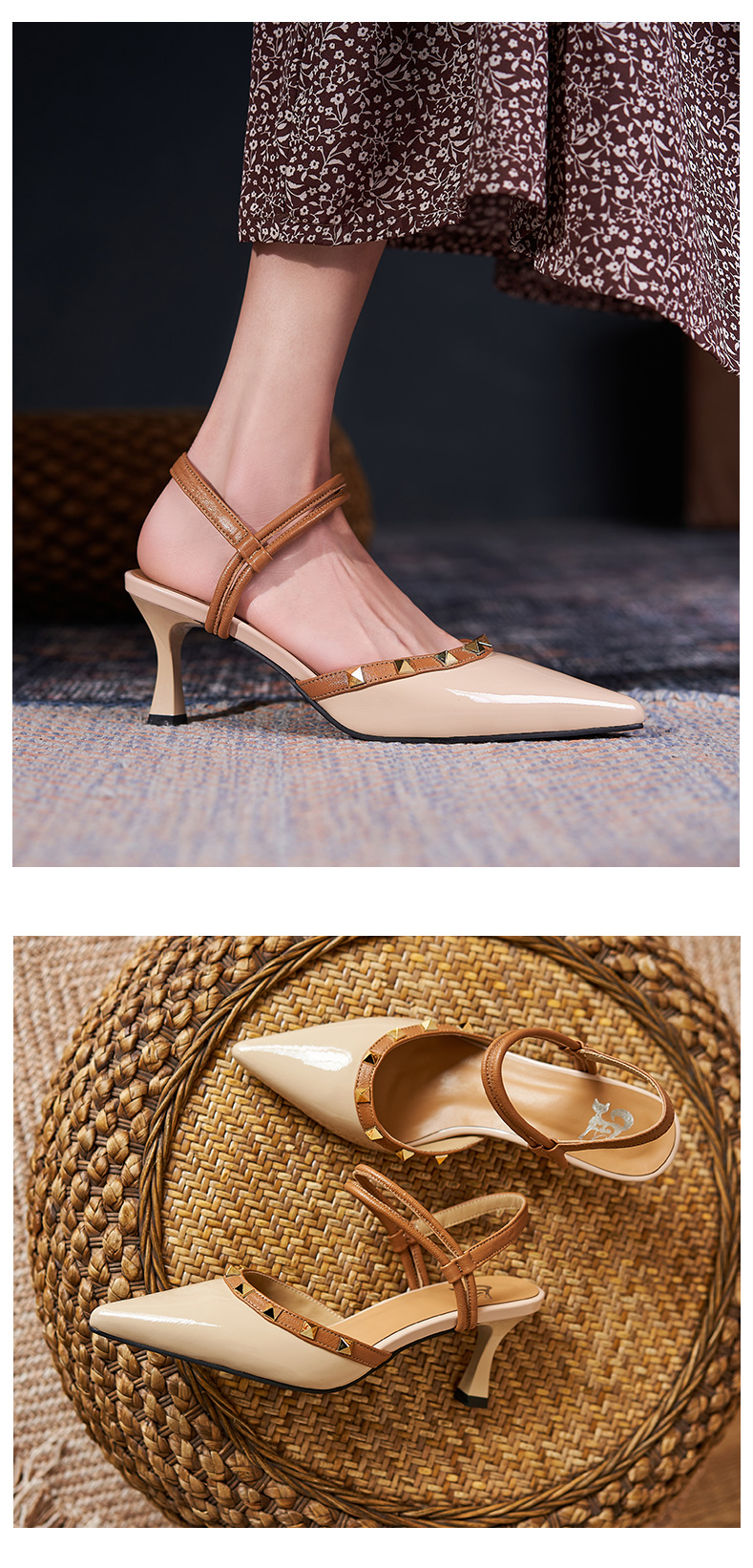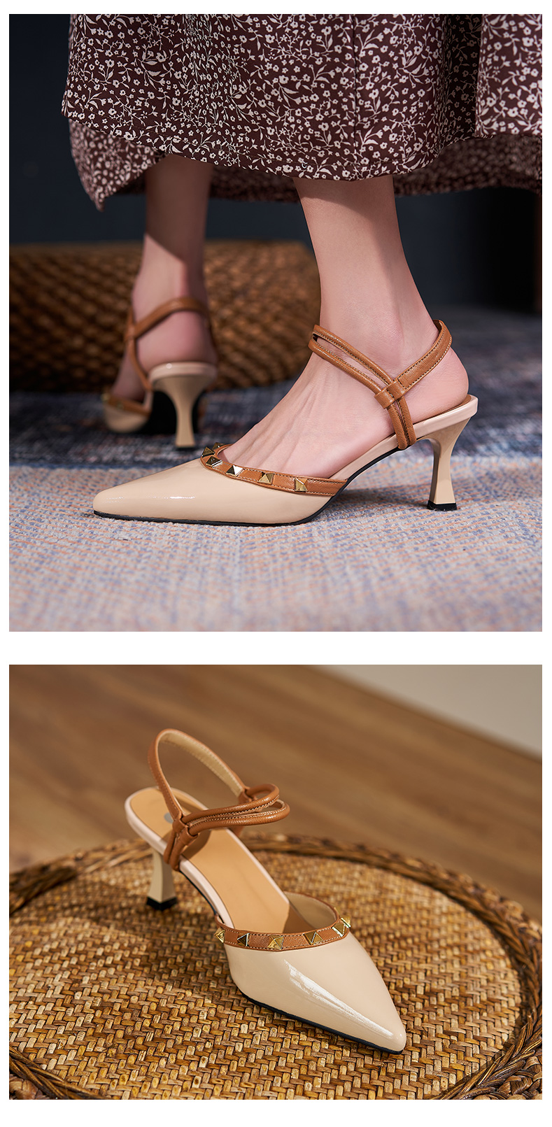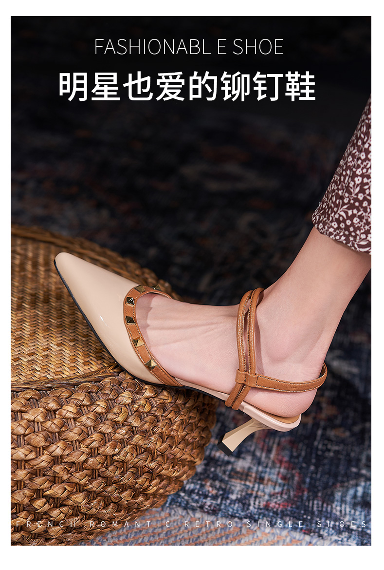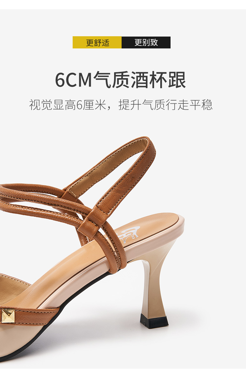 包頭涼鞋女2021新款鞋子女夏季高跟鞋后空一字帶細(xì)跟真皮時裝涼鞋