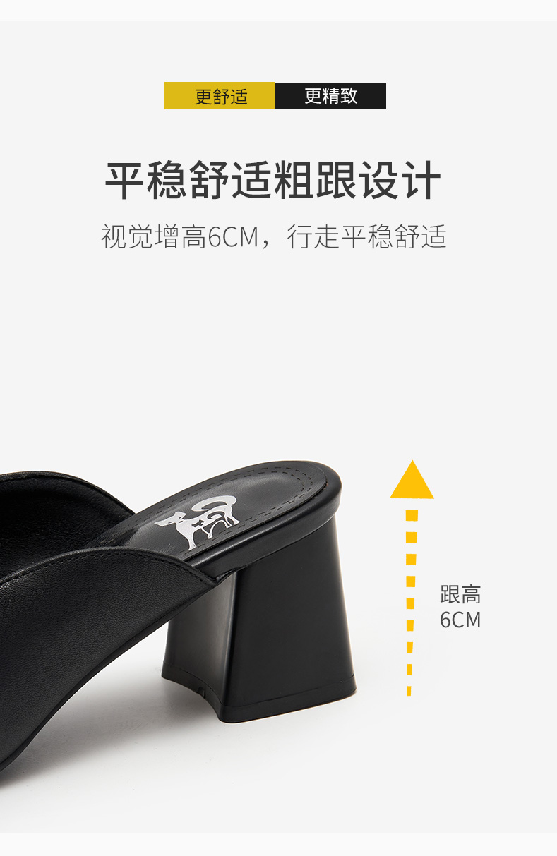 包頭半拖鞋女2021年一腳蹬女鞋夏時尚穆勒鞋真皮高跟方頭外穿涼拖