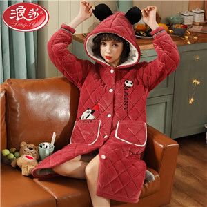 浪莎三層加厚睡裙女冬季中長(zhǎng)款睡衣保暖夾棉睡袍珊瑚絨少女家居服