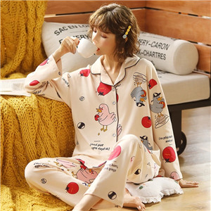 浪莎純棉睡衣女春秋款長(zhǎng)袖開衫可愛(ài)少女學(xué)生全棉家居服兩件套裝