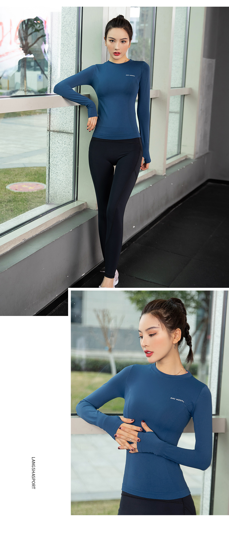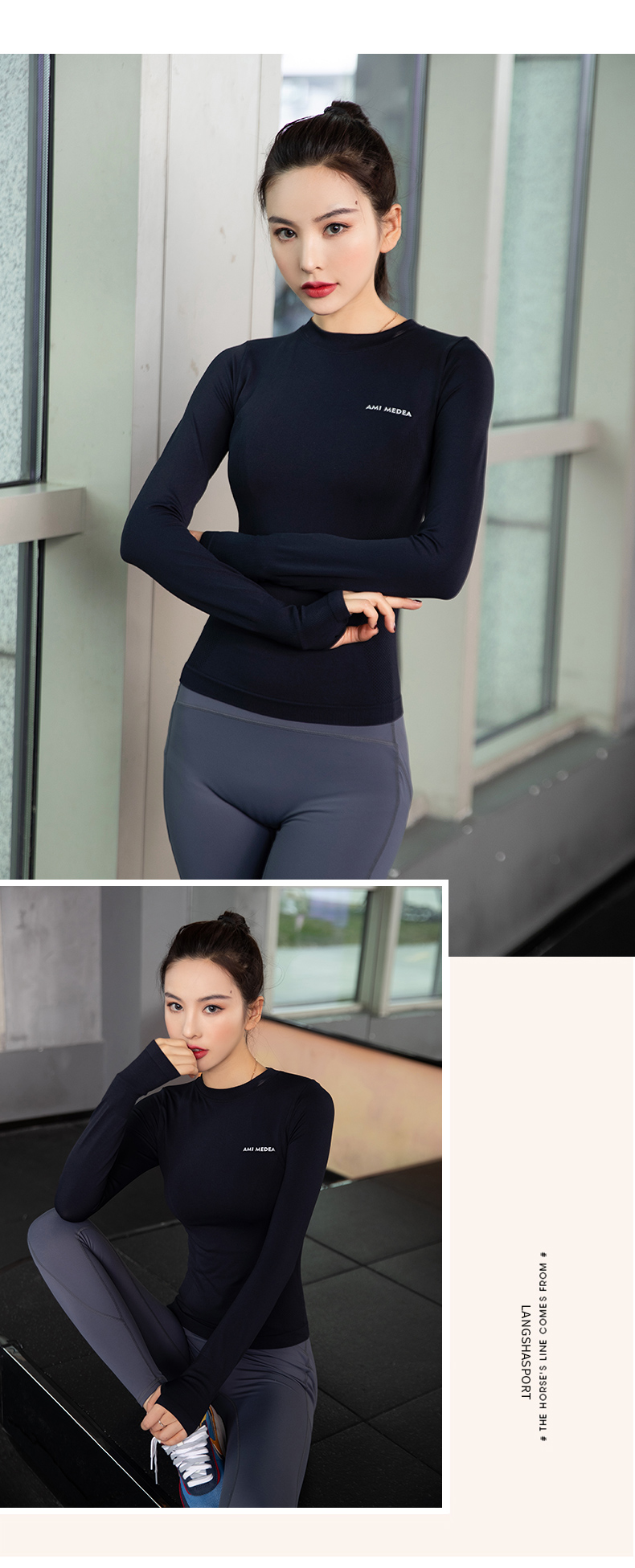 浪莎運動上衣女修身瑜伽服跑步秋冬吸汗緊身透氣速干新款健身長袖