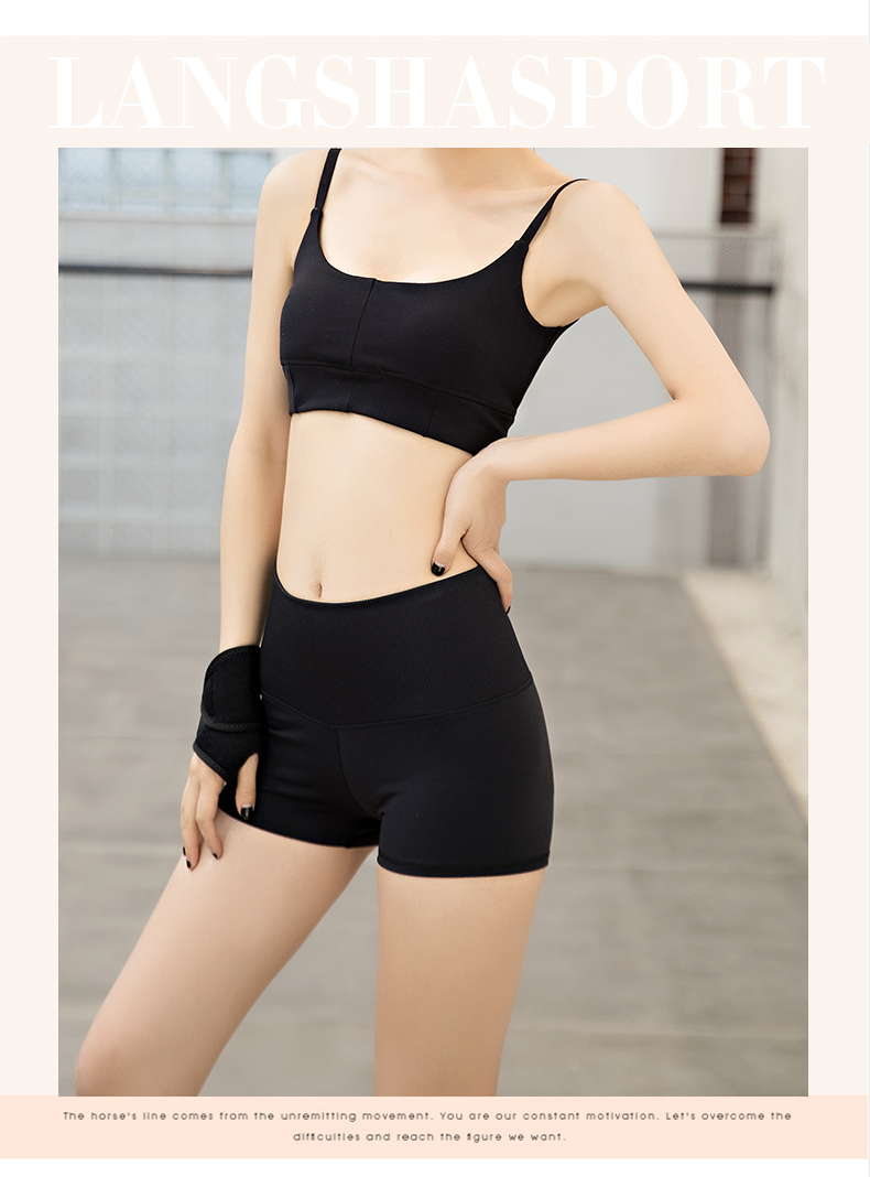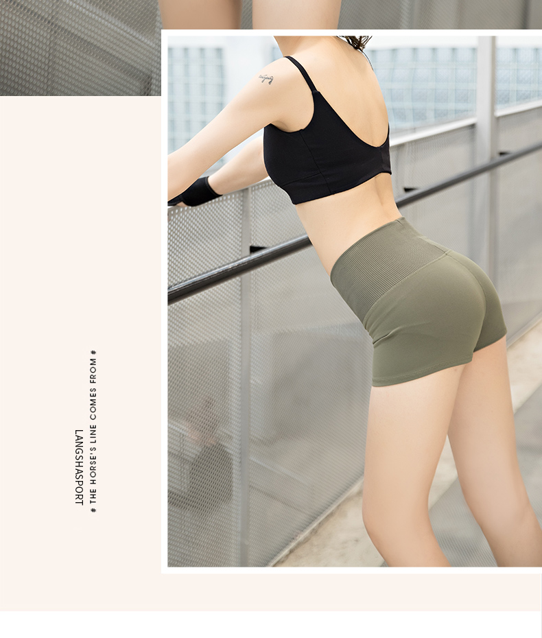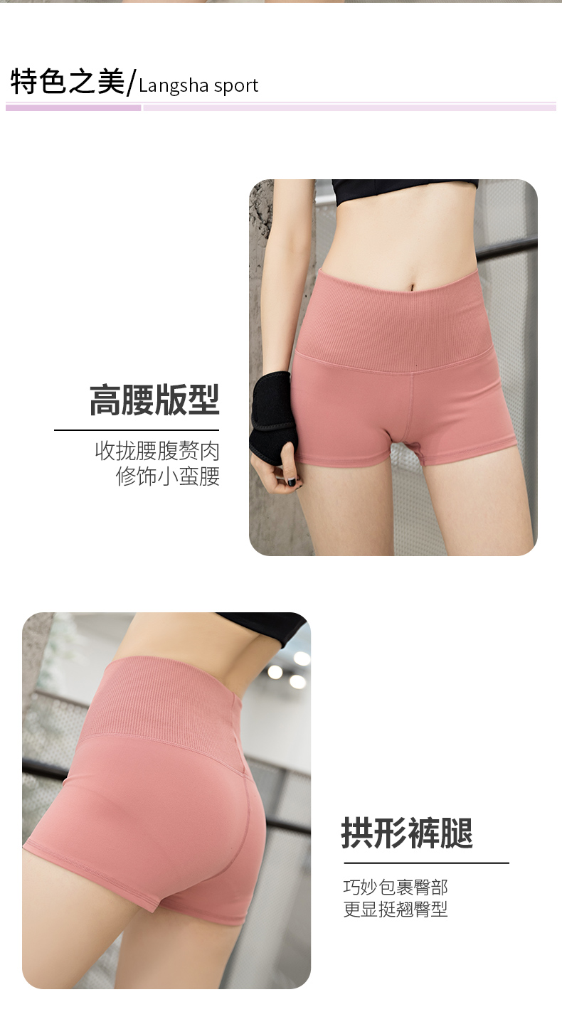 浪莎運(yùn)動(dòng)短褲女彈力緊身速干翹臀夏季薄款高腰健身三分透氣瑜伽褲