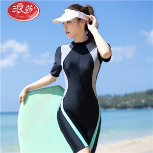 浪莎 LangSha 泳衣女保守仙女范短袖純色簡(jiǎn)約連體聚攏學(xué)生修身遮肚溫泉泳裝 黑色 L