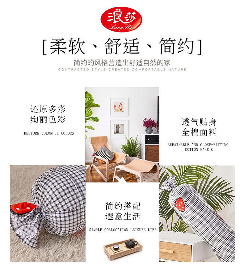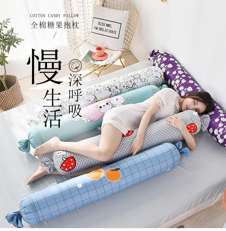 浪莎夏天純棉糖果圓柱枕頭夏季睡覺側睡夾腿抱枕長條枕女生可拆洗
