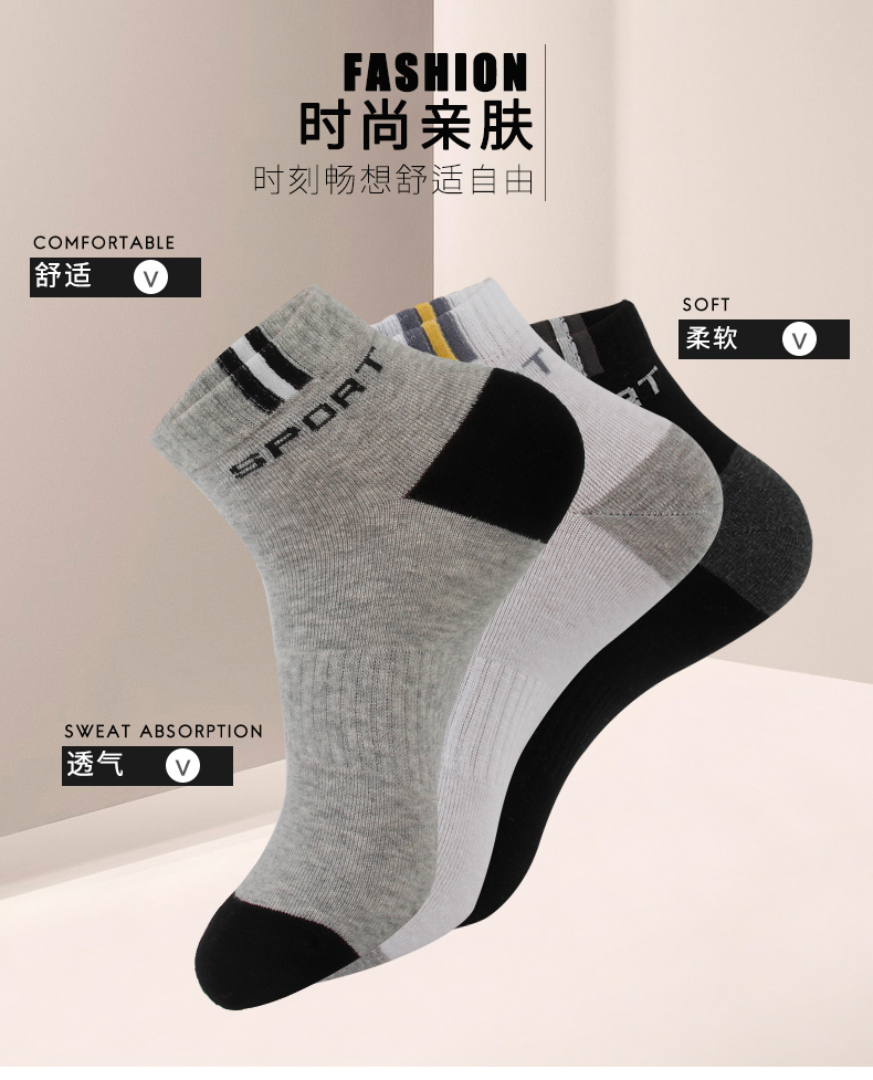 浪莎襪子男士純棉中筒襪秋季薄款吸汗運動籃球全棉春秋透氣短襪潮