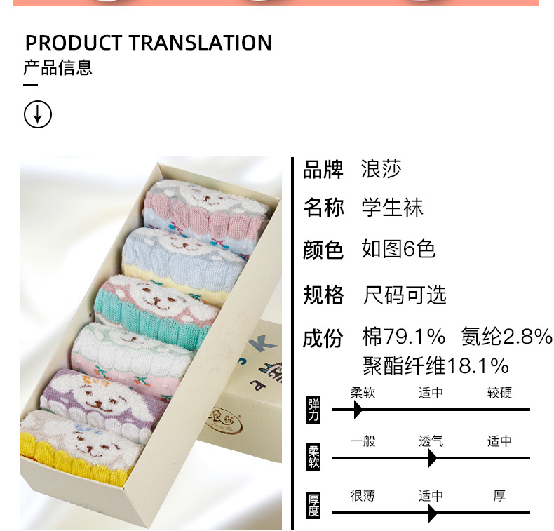 浪莎女童襪子中筒春秋款兒童花邊襪超萌公主襪中大童寶寶女孩棉襪