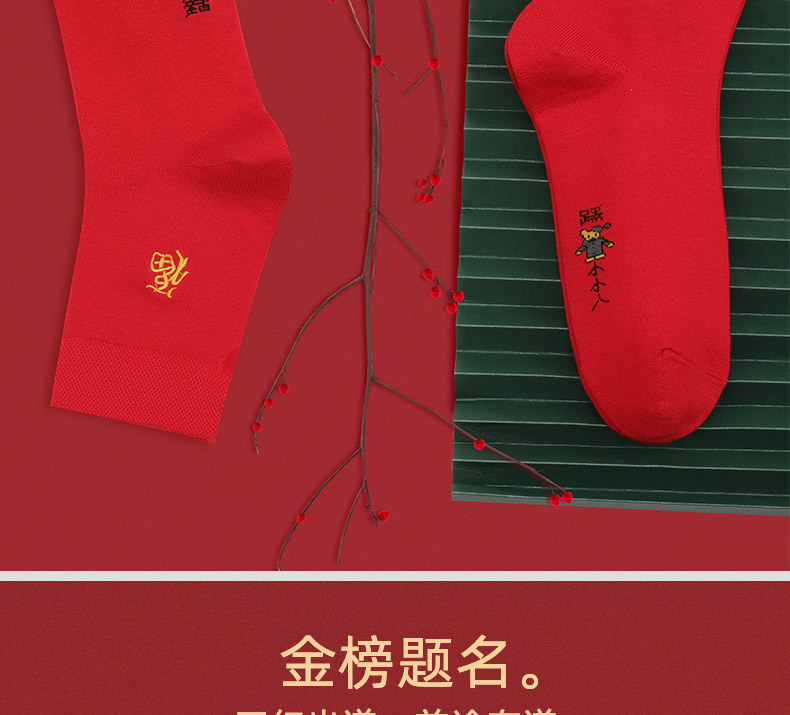 浪莎紅襪子女男士本命年純棉踩小人屬牛年結婚情侶全棉大紅色棉襪