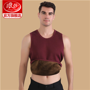 浪莎自發(fā)熱德絨保暖背心男士加厚加絨冬季上秋衣單件打底保暖內(nèi)衣