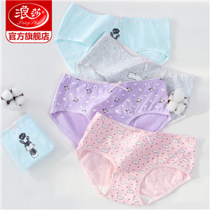 浪莎女士內(nèi)褲女三角褲中腰春夏少女純棉面料透氣全棉日系女生褲衩