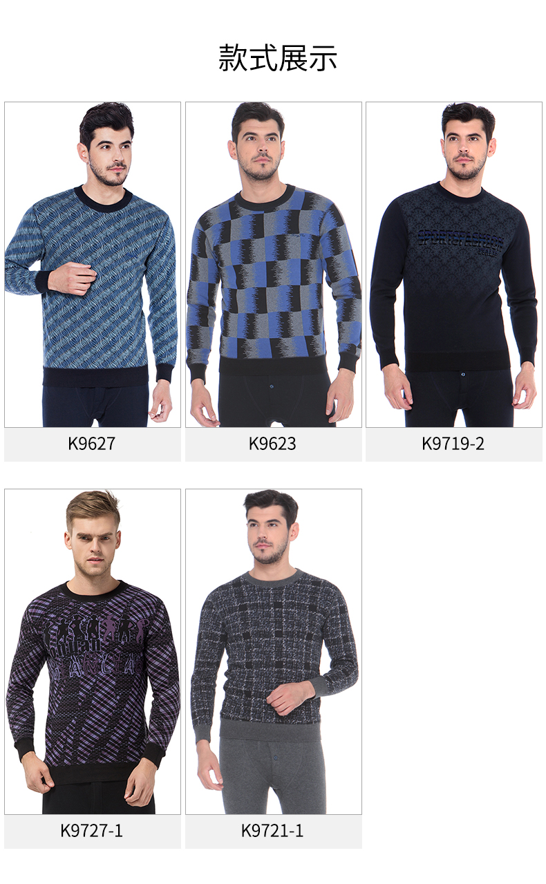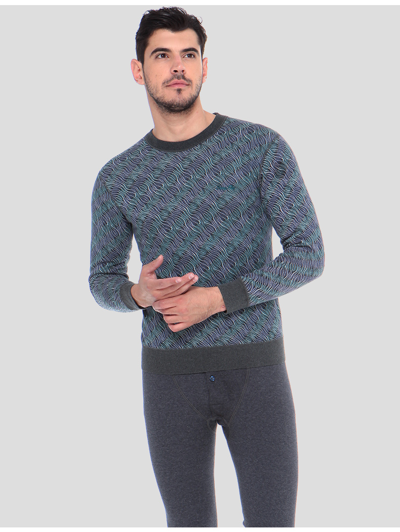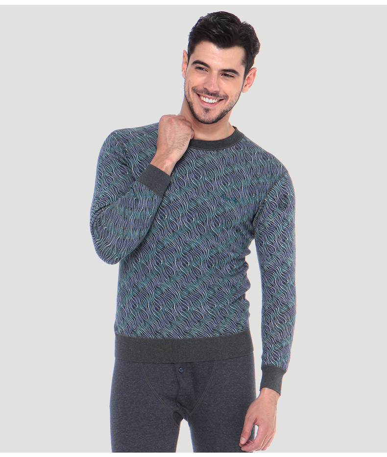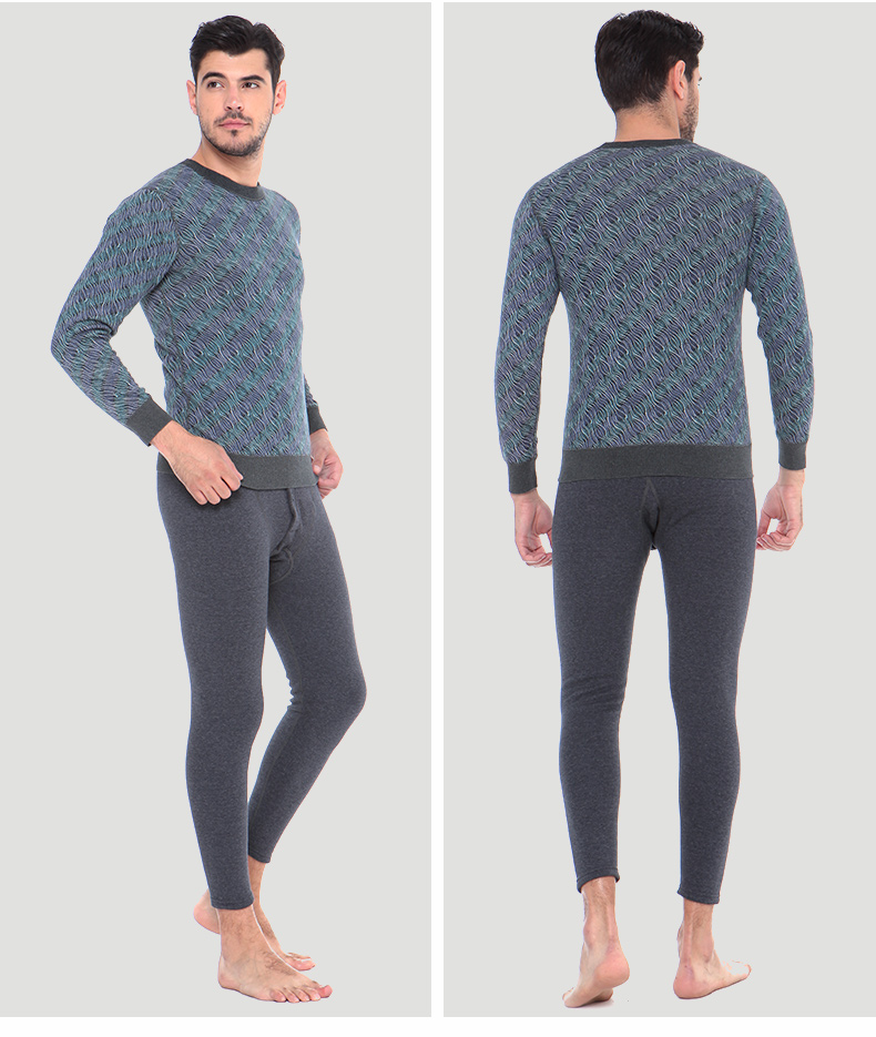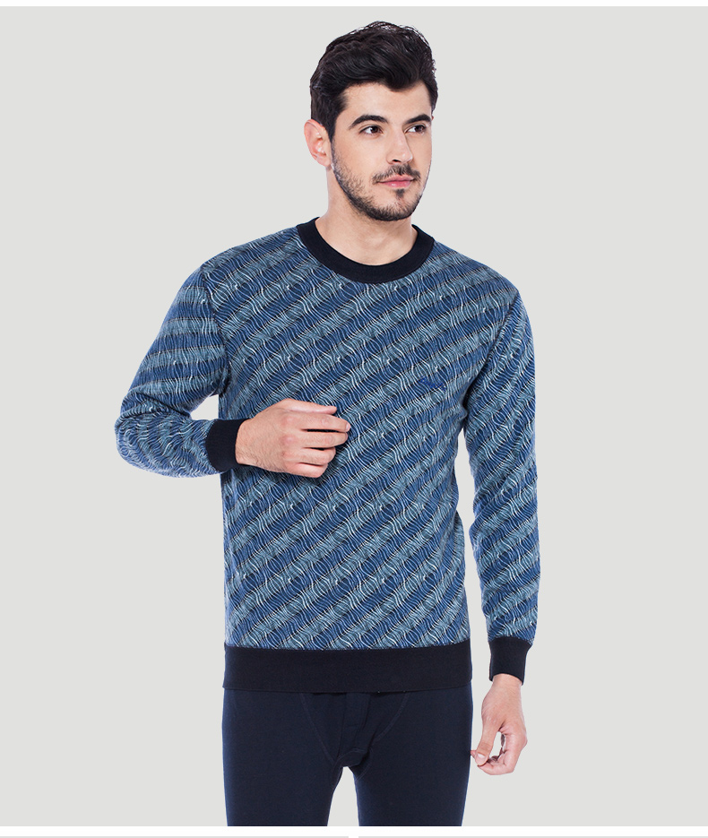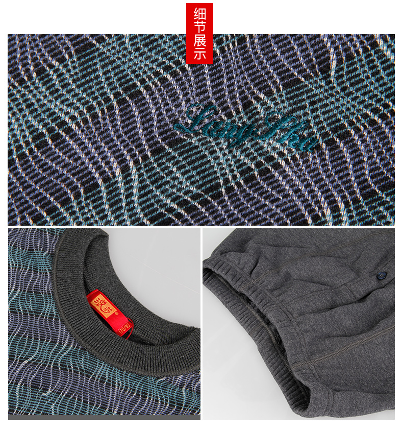 浪莎條紋個性保暖內(nèi)衣男士加厚加絨中老年人爸爸冬季秋衣秋褲套裝
