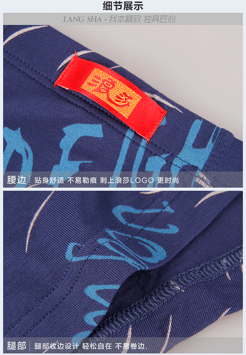 浪莎內褲 男士平角褲中腰青年春夏透氣U凸印花四角短褲衩男